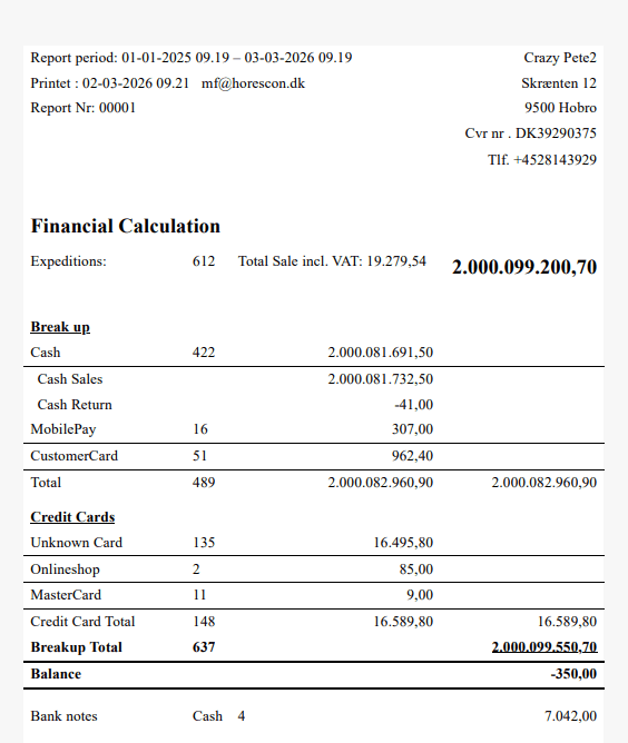 Så er der kommet en ny rapport generator. Det er blevet meget lettere for dig at lave din periodeopgørelse. Din omsætning balanceres op med indkomne betalinger. Du ved nøjagtig hvad der er i Visa, Mastercard, dankort eller mobilePay. Det er nemt og overskueligt.